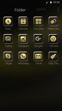 Hey there, thanks for taking a look at my High Tech Glossy Black Theme! This futuristic black and gold theme includes a sweet futuristic golden black background and detailed golden and black icons. We designed this launcher theme to give your phone a nice style unlike other themes out there. You may already have other yellow themes or progressive themes on your phone, chances are you'll like looking at this energy launcher on your phone too! Give it a spin and apply it to your phone today.