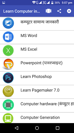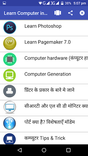 This app is provide to help its readers learn the basics of Windows application, the hardware components, and all basic data about a computer in Hindi.