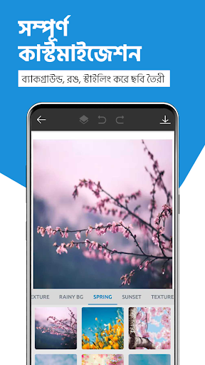 * গ্যালারী থেকে ফটো সিলেক্ট অথবা অ্যাপ এর বিভিন্ন ক্যাটাগরি থেকে ব্যাকগ্রাউন্ড সিলেক্ট