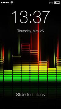 Appendix lock screen designed specifically for music lovers. 5 great colorful graphic pictures depicting musical equalizer. You can choose to your taste and screen lock method in the mood to change the background image.