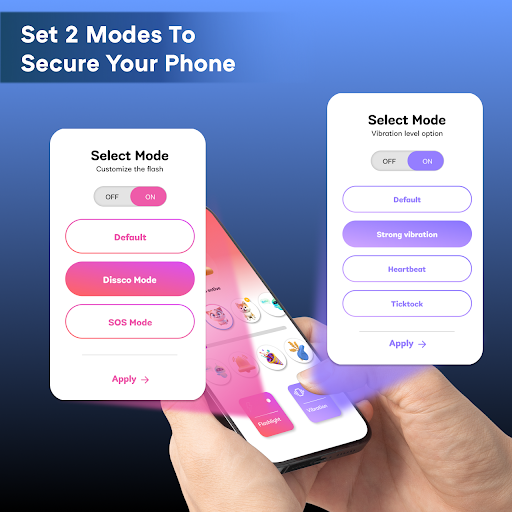 ust 💡ustomization ডন দিয়ে সহজ করা হয়েছে 'টি আমার ফোনটি স্পর্শ করুন - সতর্কতা অ্যাপ্লিকেশন। আপনি সাউন্ড ভলিউম, সাউন্ড নিঃসরণের সময়কাল, এসওএস ফ্ল্যাশ সতর্কতা বিকল্পগুলি, ফোন বাজ তীব্রতা সামঞ্জস্য করতে পারেন এবং একটি রিংটোন অন্তর্ভুক্ত করবেন কিনা তা চয়ন করতে পারেন।ফ্ল্যাশটি ডিফল্ট, ডিস্কো মোড, এসওএস ফ্ল্যাশ সতর্কতা মোড বা ডিফল্ট, স্ট্রং বাজ, হার্টবিট, টিকটকের মতো অন্যান্য বাজ মোডের জন্য কাস্টমাইজ করা যায়।টাচ গার্ড অ্যালার্ট নামে অ্যান্টি-স্পাই ডিটেক্টর প্রযুক্তি ব্যবহার করে অ্যান্টি-চুরির সতর্কতা অ্যাপটি আপনাকে ডিফল্ট সেটিংস মেনে চলা একাধিক পছন্দকে অনুমতি দেয়