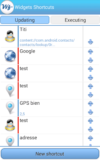 Put little widgets on the screen or list widget to view all shortcuts (Wf : Widgets Favoris in French)