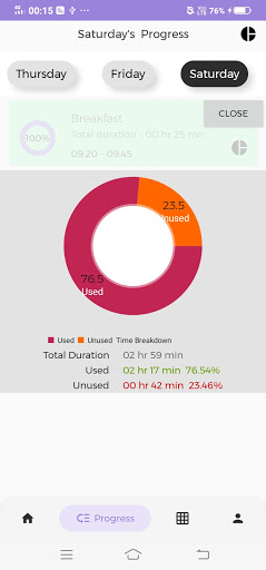 অ্যাপ্লিকেশনটিতে আপনি সাপ্তাহিক ভিত্তিতে সময় টেবিলটি যোগ করতে, মুছতে বা সংশোধন করতে পারেন, আপনি অন্য কোনও দিন থেকে সময় টেবিলটি আমদানি করতে পারেন এবং শেষ পর্যন্ত (অবশ্যই অন্তত না) আপনি আপনার অগ্রগতি দেখতে পারেন আপনার জন্য কতক্ষণ আপনি বরাদ্দ করেছেনসারা দিন এবং আপনি কতটুকু ব্যবহার করেন এবং কতটুকু ব্যবহার করেননি।
