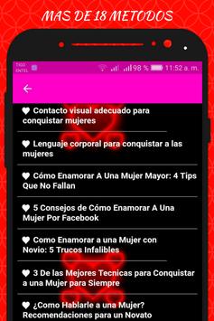 También encontraras en nuestra aplicación como conquistar a una mujer por mensajes, y si tu amor esta en las redes sociales aprenderás como conquistar a una mujer por Facebook, a y si ella tiene whatsapp pues no te puedes perder como enamorar a una mujer por whatsapp, ahora tienes las claves perfectas para ser todo un Don Juan.