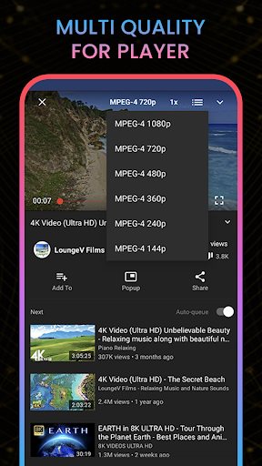 You can watch HD And 4k video because the vanced tube supported high resolution with high FPS.