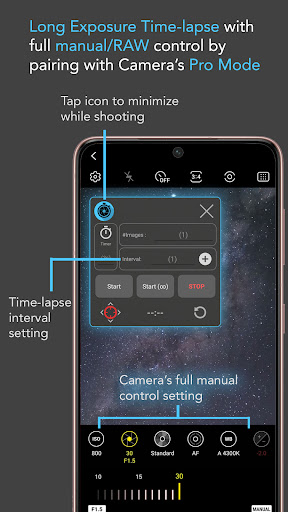 - টাইম-লেপ কনফিগারেশনের উপর সম্পূর্ণ নিয়ন্ত্রণ (বিলম্ব টাইমার, ব্যবধানের সময়, শট সংখ্যা)