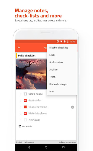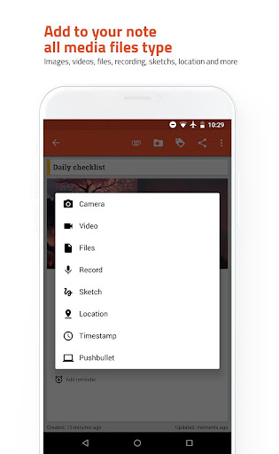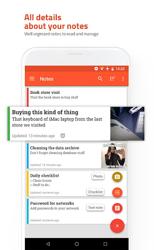 2- সব নোটগুলি বোল্ড শিরোনাম ক্ষেত্রের মতো অনেক অতিরিক্ত উপাদান থাকতে পারে, যেমন স্টিকি নোটের মতো রং, 8 টি রং (তাদের মধ্যে একটি ডিফল্ট হিসাবে সেট করা যেতে পারে), টাস্ক তালিকা, টু ডু তালিকা, শপিং তালিকা এবং চেকলিস্ট, চেক-বক্সগুলি আপনাকে কী করা উচিত তা নিয়ন্ত্রণ করতে এবং এটি সহজ সরিয়ে ফেলতে হবে, আপনি একটি ফটো নিতে এবং আপনার নোটে এটি সংযুক্ত করতে পারেন, ভয়েস মেমো - উচ্চ মানের এবং কম আকারের M4A অডিও রেকর্ডিং, পাঠ্য পাঠ্যক্রমের সাথে যোগাযোগ করুন, নোটগুলি নির্দেশ করার জন্য ভয়েস স্বীকৃতি ব্যবহার করুন।