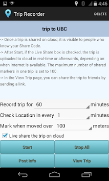 You can use the app to record your trip, post information during the trip and share it with other people in real-time or trip history.