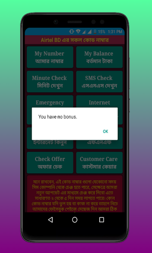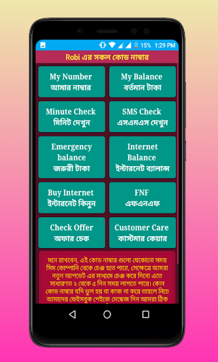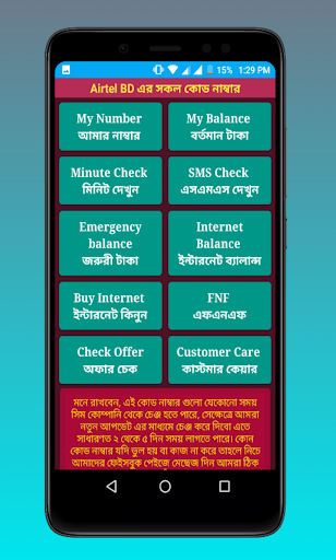 দৈনন্দিন প্রয়োজনীয় সিম কার্ডের সকল কোড আমাদের মনে রাকখা সম্ভব না, তাই আমাদের এই একটি অ্যাপ এর মাধ্যমে প্রয়োজনীয় সকল কোড নাম্বার এর কাজ করতে পারবেন ।