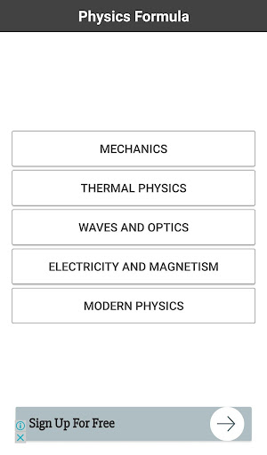 This app includes many physics formulas. As physics formulas are tough to remember using this application will help you to get short description of the formulas. Formulas are classified by their types. Moreover symbols of the formula has short description.