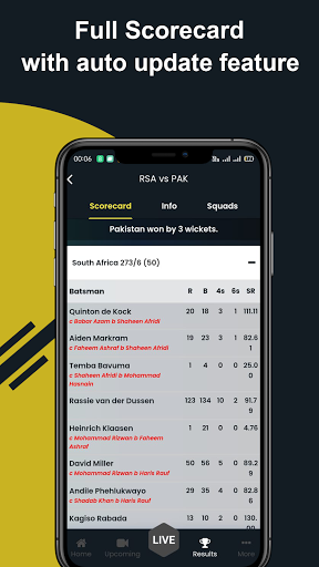 - লাইভ ম্যাচের সময় প্রতিটি ক্রিয়াকলাপের জন্য সম্পূর্ণ ভাষ্য।