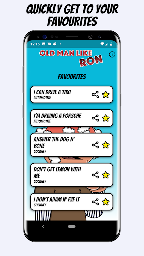 আমরা আপনাকে এবং আপনার বন্ধুদের হাসিখুশি হবে যখন আপনি রন এর বক্তব্য শোনার শুরু এবং রন মত পুরোনো মানুষ হিসাবে পুরোনো মানুষ হিসাবে পুরোনো কথোপকথন এবং জীবনের উপর কোন ননসেন্স চেহারা আছে।আপনার বন্ধুদের কাছে তাদের খেলুন এবং তাদের Ron এর বক্তব্য এমপি 3 ফাইল পাঠান।স্বয়ংক্রিয়তা, মকনি, বিভ্রান্তিকর, পানীয়, সঙ্গীত, কদর্য, দুষ্টু, সুন্দর, অন্যান্য এবং প্রশ্ন সহ অনেক বিভাগে অনেক বিভাগ।আপনি আপনার পছন্দসই তালিকার সেরা পছন্দটি যুক্ত করুন এবং আপনি অ্যাপ্লিকেশনটি শুরু করার সময় তাদের ব্যবহার করার জন্য প্রস্তুত করুন।একবার আপনি একটি বলার চেষ্টা করার পরে কেবল ফেভারিটে তালিকা থেকে এটি সরান।