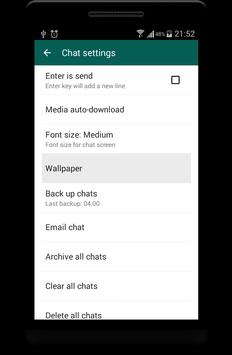 Open your-Whatsapp Messenger. Click on Menu-Button. Select Settings-> Chat Settings-> Wallpaper. Choose this app and set your favourit picture with the button in the middle.