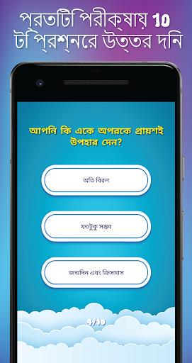 আমাদের শক্তিশালী অ্যালগরিদম ব্যবহার করে আপনি যে উত্তরগুলি বেছে নিয়েছেন তার উপর ভিত্তি করে ফলাফলটি গণনা করা হয়, সুতরাং সেরা ফলাফল নিশ্চিত করার জন্য যথাসম্ভব সৎ হওয়ার চেষ্টা করুন!
