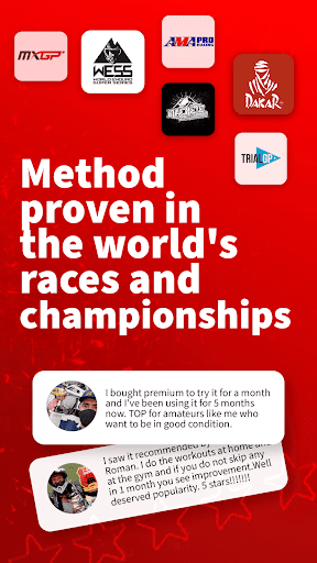 আপনার লক্ষ্য অর্জন করুন এবং আমাদের একচেটিয়া অ্যালগরিদমের সাথে প্রয়োজন। এখন, আপনি বাড়িতে বা আপনার সাইকেল দিয়ে আমাদের motocross প্রোগ্রামের সাথে আপনার workouts একত্রিত করতে পারেন। আপনার সাইকেল দিয়ে সার্কিট বা রাইডিং ডে এর পরবর্তী সফরের জন্য হার্ড ট্রেন।
