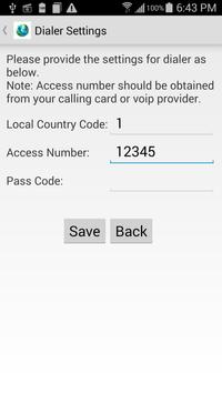 This app would allow the user to save their calling card passcode in the device. This would allow the user to simply dial their desired number from the app and the app would automatically enter the passcode (that was entered). You can favorite the contacts and also view the call history. Also, this is a smart dialer and would detect (based on the preferences which you have set) whether you are making domestic or international call. In case of domestic call it would route the call through your service provider and in case of international call the application would route the call through the calling card.