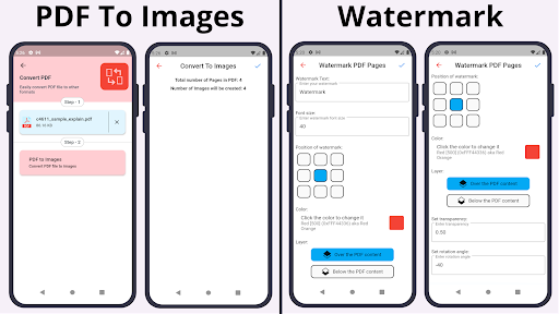 7। ওয়াটারমার্ক পিডিএফ - পিডিএফ পৃষ্ঠাগুলিতে ওয়াটারমার্ক যোগ করার অনুমতি দেয়। এটি পৃষ্ঠায় ওয়াটারমার্কের জন্য বিভিন্ন অবস্থানের মতো বিকল্পগুলি সরবরাহ করে, যা নীচে বা তারপরে, একটি কাস্টম ওয়াটারমার্ক রঙ স্থাপন করে এবং ওয়াটারমার্ক ট্রান্সপারেন্সি মানটি স্থাপন করে।