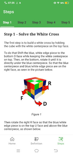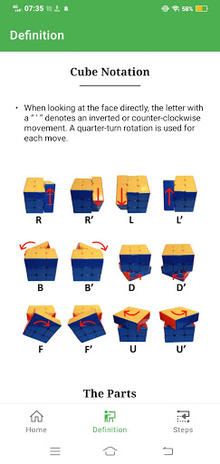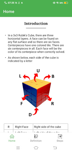 এই অ্যাপ্লিকেশনটি আপনাকে 3x3 Rubik এর ঘনক্ষেত্রের ধাপে ধাপে ধাপে ধাপে ব্যাখ্যা করবে।অনুসরণ করার জন্য প্রধানত 7 ধাপ আছে।তারা,