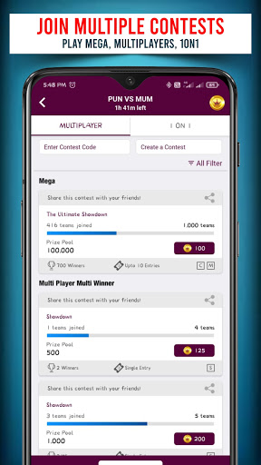 আপনার ফ্যান্টাসি ড্রিম টিম তৈরি করে একাধিক প্রতিযোগিতা খেলতে বিগশ ফ্যান্টাসি অ্যাপ্লিকেশনটি ডাউনলোড করুন।