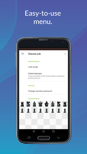 ChessLock is a unique screen lock that replaces traditional locking mechanisms and allows you to either program chess moves or solve mate-in-one puzzles to get past the screen lock. You can lock and unlock your mobile using one of our three different modes: