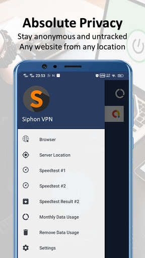 Siphon VPN আপনাকে ট্র্যাক করার বিষয়ে উদ্বেগ ছাড়াই বেনামে ওয়েব ব্রাউজ করতে সহায়তা করে আপনার বাস্তব আইপি লুকানো হবে কারণ ইন্টারনেট পরিষেবা সরবরাহকারী বা অন্য কেউ দ্বারা।