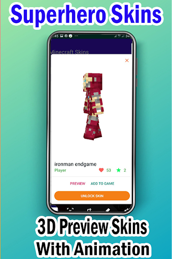 Minecraft PE (পকেট সংস্করণ) জন্য সুপারহিরো স্কিনস আপনাকে একটি বোতামের স্পর্শের সাথে বিনামূল্যে জন্য বিনামূল্যে জন্য আপনার Minecraft অক্ষরের একটি ত্বকের সুপারহিরো নির্বাচন করতে এবং প্রয়োগ করতে দেয়!