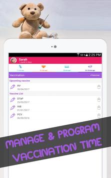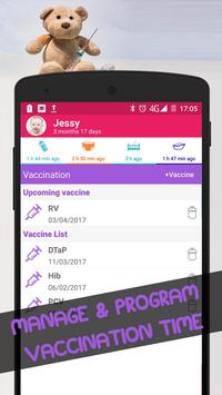 manage and schedule the baby's vaccinations, as well as review the vaccine log.
