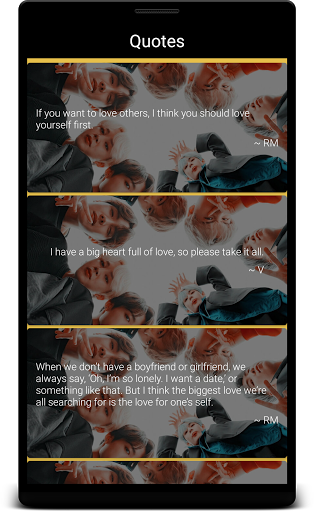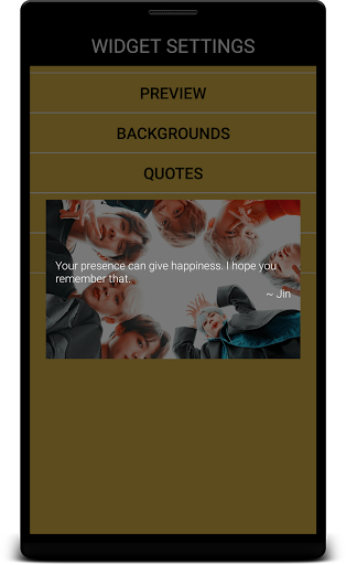 বিটিএস উদ্ধৃতি উইজেটগুলি আপনাকে আপনার পছন্দের চরিত্রের উদ্ধৃতিটি হোম স্ক্রীনে ছবির সাথে সেট করতে সহায়তা করে। আমরা আশা করি আপনি আপনার অ্যান্ড্রয়েড স্মার্টফোনের জন্য উইজেটগুলির ব্যাকগ্রাউন্ড হিসাবে ব্যবহার করার জন্য এইচডি ইমেজগুলির আমাদের ক্রমবর্ধমান সংগ্রহটি উপভোগ করবেন।