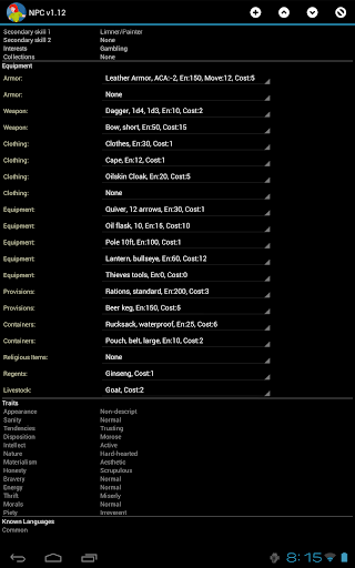 This is a player/non-player character generator for the first edition of the most popular role playing game of all time.