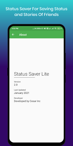 স্থিতি সেভার লাইট - সিজার ইনকর্পোরেটেড আপনাকে অনেকগুলি বৈশিষ্ট্য সহ হোয়াটসঅ্যাপের জন্য সেরা এবং দ্রুততম স্থিতি সেভার অ্যাপ্লিকেশন সরবরাহ করে।এই অ্যাপ্লিকেশনটি আপনার বন্ধুদের অবস্থা এবং গল্প সংরক্ষণ করতে ব্যবহার করা যেতে পারে।এটি 1MB এর সহজেই স্থিতি সংরক্ষণের জন্য একটি লাইট অ্যাপ্লিকেশন, আপনি স্ট্যাটাস সেভার লাইট অ্যাপ্লিকেশনের ভিতরে স্থিতি দেখতে পারেন।