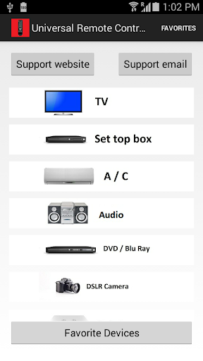 আপনি আপনার টিভি, এয়ার কন্ডিশনার, ডিভিডি প্লেয়ার, ব্লু-রে, কেবল স্যাটেলাইট সেট শীর্ষ বক্স, মিডিয়া প্লেয়ার, হোম সিনেমা নিয়ন্ত্রণ করতে পারেন, হাই ফাই অডিও সিস্টেম, ডিএসএলআর ক্যামেরা, গেম কনসোল, কার অডিও, আরজিবি LEDs, প্রজেক্টর এবং এই অ্যাপ্লিকেশনটির সাথে অনেক অন্যান্য ডিভাইস।