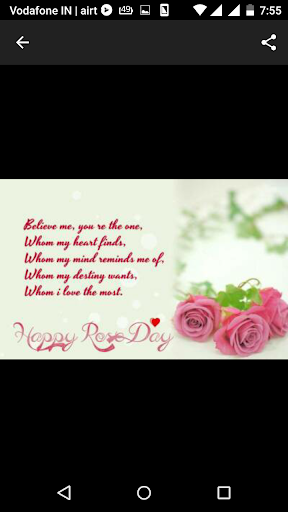 This app makes it very simple for you to send some beautiful Happy Rose day greetings to your bf/gfs with just click of a button.