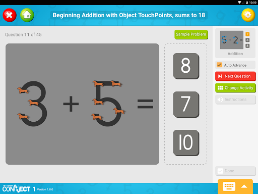 সমস্ত গ্রেড স্তরের এবং বিশেষ শিক্ষার সাথে ব্যবহারের জন্য ডিজাইন করা হয়েছে, টাচমথ সংযোগটি কাস্টমাইজেবল প্লেলিস্ট এবং সমস্যা পছন্দগুলির জন্য অনুমতি দেয়, ব্যবহারকারীকে টাচপয়েন্টগুলি কাস্টমাইজ করতে দেয় এবং শিক্ষার্থী গেমপ্লেয়ের জন্য একটি মজার প্রতিযোগিতা মোড আছে।