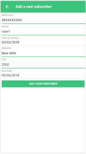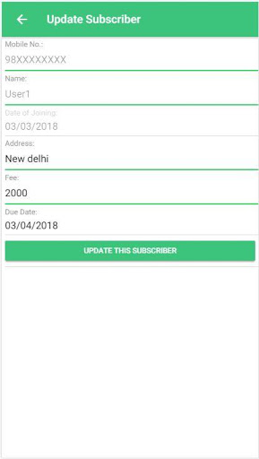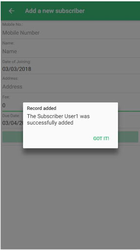 This app stores all data on our server. The app supports subscriber add update delete along with alert page which shows dues fees and we have plans to constantly enhance it. This is a COMPLETELY FREE app and we are committed to keeping it free in the future too.