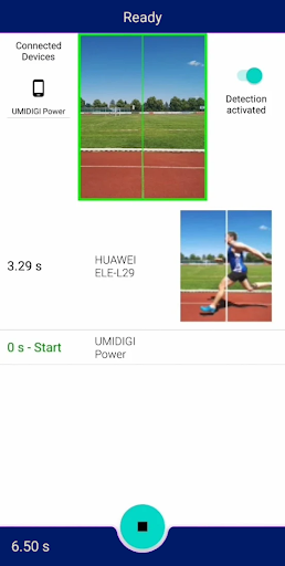 একটি একক ফোন কোলের সময়গুলি পরিমাপ করতে পারে।দুটি ফোনের সাহায্যে একটি ফোন পিস্তল শুরু হিসাবে ব্যবহার করুন, অন্য ফোনটি যখন অ্যাথলিটের বুক ফিনিস লাইনটি অতিক্রম করে তখন স্বয়ংক্রিয়ভাবে সময়টি থামে।বা একটি উড়ন্ত শুরুর সাথে স্প্রিন্টের সময়গুলি পরিমাপ করুন, উদাহরণস্বরূপ 30 মি ফ্লাইং।একটি ফোন 30 মিটার শুরুতে এবং একটি শেষে স্থাপন করা হয়েছে