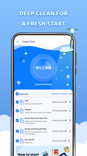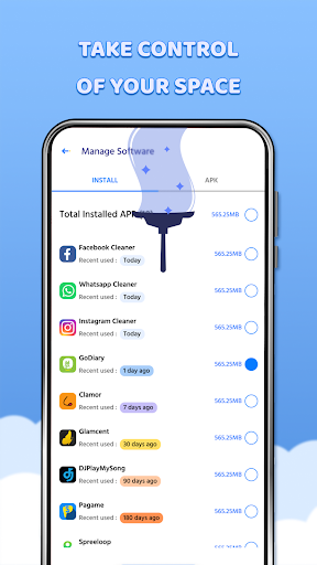 ফোন ক্লিনার দিয়ে আপনার ফোন স্টোরেজটি পরিষ্কার করুন!এটি ফেসবুক হোয়াটসঅ্যাপ ইনস্টাগ্রাম ইত্যাদির মতো অ্যাপ্লিকেশনগুলি পরিষ্কার করতে পারে ক্যাশেড ফাইলগুলি, যা আপনার ফোন স্টোরেজের বিশাল অপচয়।দ্রুত এবং সহজেই জাঙ্ক সরিয়ে ফেলুন, স্থানটি পুনরায় দাবি করুন
