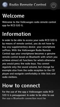 In order to be able to access your radio RCD 320 G by means of remote control, you do not have to buy any supplementary device: your smartphone suffices. With the Volkswagen Radio Remote Control app your smartphone becomes a genuine remote control based on Bluetooth with which you achieve almost all functions for which otherwise you would press the radio keys.