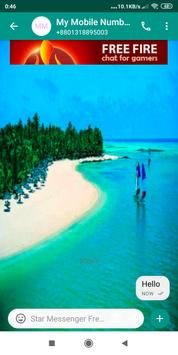 This Star Messenger is a Great Messenger for free video and Audio Call and Chat Message. You can Call everywhere in the world in high speed HD quality video and clear sound by this Messenger . So download this powerful Messenger in all Android mobile from Google Play Store. Enjoy this Star Messenger Free Video Audio Call and chat for Life time . Thanks
