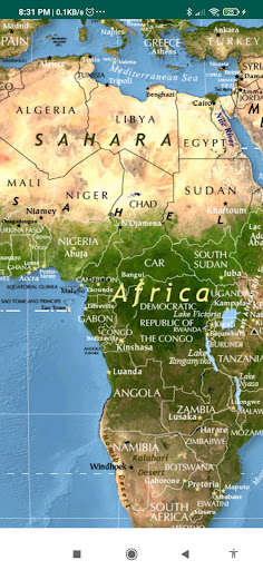 শারীরিক মানচিত্রের জগতটি একটি সাধারণ অ্যান্ড্রয়েড অ্যাপ্লিকেশন যা উইকিমিডিয়া থেকে নেওয়া বিশ্বের মানচিত্র প্রদর্শন করে