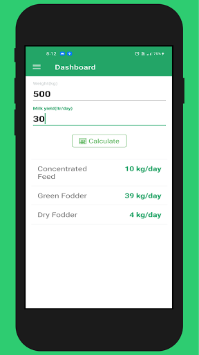 গরু ওজন এবং দুধ-ভিত্তিক ফিড ক্যালকুলেটর।