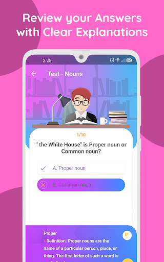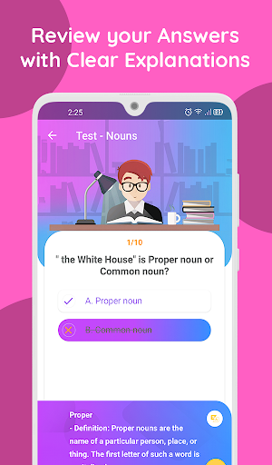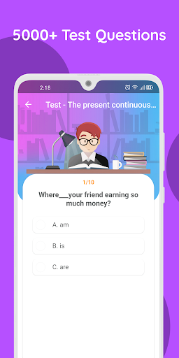 ইংরেজি ব্যাকরণ পরীক্ষা অ্যাপ্লিকেশনটি আপনার ইংরেজি ব্যাকরণ দক্ষতা উন্নত করার সর্বোত্তম উপায়। এখানে, আমাদের ইংরেজী ব্যাকরণ পরীক্ষা এবং টিউটোরিয়াল আছে যারা ইংরেজি দ্রুত এবং বিনামূল্যে শিখতে শুরু করতে চায়। আরো বিশেষভাবে, ব্যাকরণ ব্যায়াম প্রশ্নগুলি স্পষ্ট উত্তর এবং ব্যাখ্যা দ্বারা সংসর্গী হয়।