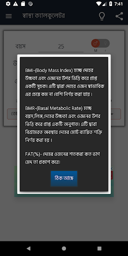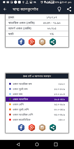 আপনার ওজন বেশি হোক, বা ওজন কম হোক – উচ্চতা অনুযায়ী ওজন ঠিক আছে কিনা, এটা সব সময়ে খেয়াল রাখা দরকার। তবে ওজন পরিমাপ করার জন্য আমাদের প্রায়ই দৌড়াতে হাসপাতাল বা ক্লিনিকে – যেটা বেশ ঝামেলার। আর রাস্তার পাশে যারা দুই টাকার বিনিময়ে ওজন মেপে দেয়, তাদের যন্ত্র শরীরের আদর্শ ওজন নির্ণয় করার জন্য কতটা উপযোগী তা নিয়ে যথেষ্ঠ সন্দেহ করার কারন রয়েছে। তাই বলে কি হাজার হাজার টাকা খরচ করে বাসায় ওজন মাপার মেশিন নিয়ে আসবেন? সেই চিন্তা যদি আপনার মাথায় এসে থাকে, তবে বাদ দিয়ে দিন। কারন আপনার কথা মাথায় রেখেই আমরা একটি আদর্শ ওজন ক্যালকুলেটর প্রস্তুত করেছি। এই ওজন ক্যালকুলেটর দিয়ে আপনি খুব সুন্দর ভাবে আপনার বি এম আই হিসেব করতে পারবেন। বাজারে যতগুলো উচ্চতা-ওজন ক্যালকুলেটর আছে – সেগুলোর সেরাটির সাথে আমাদের এই ওজন মাপার app নিয়ে আপনি পাল্লা দিতে পারবেন নি:সন্দেহে। এই এ্যাপটি ব্যবহার করার বড় একটি সুবিধা আপনি যে কোনও সময়েই এটি দিয়ে আপনার ওজন মাপতে তো পারবেনই, সেই সাথে ট্রাক রেকর্ডও রাখতে পারবেন খুব ভালমত। ওজন/উচ্চতা বাড়ানোর উপায় হিসেবেও এই এ্যাপটি ব্যবহার করতে পারবেন। কারন এগুলো বাড়ানোর জন্য আপনাকে প্রতিনিয়ত এগুলো ট্রাক করতে হবে। আবার ওজন কমানোর ব্যাপারেও এই এ্যাপটি আপনাকে সহায়তা করবে। কাজেই আর দেরি কেন? আপনি যদি সত্যিই একটি ভাল উচ্চতা-ওজন ক্যালকুলেটর খুঁজতে খুঁজতে এখানে এসে থাকেন – তবে এখনই এ্যাপটি ডাউনলোড করে ফেলুন।