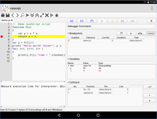 ★ Debugging support for build in QScript/JavaScript interpreter (only for tablets)