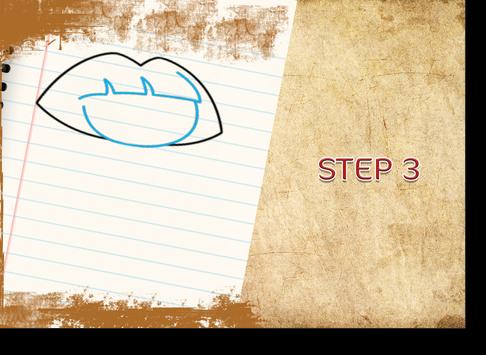 What you will do here is draw out her collar on her shirt. Now draw out the shape of her arms as well which are cute and pudgy. Continue on to draw out the thick looking legs and her straps on her shoes. Before leaving this step you will need to draw out the tongue.
