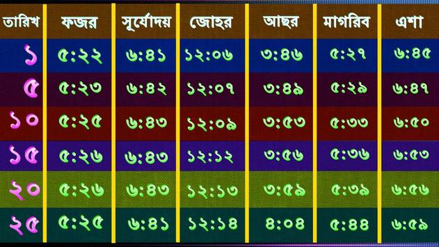 Bangla Prayer Time Calendar. Permanent Prayer Timing Calendar For Bangladesh.