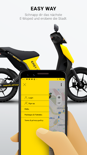 Öamtc সহজ উপায় হল ভিয়েনা এবং গ্রাজে মোবিলিটি ক্লাবের ই-এমপিড শেয়ারিং। সফল নিবন্ধনের পরে, আপনি কোনও সময়ে আপনার স্মার্টফোনের সাথে একটি öamtc সহজ উপায় ই-মোপ্ড ভাড়া এবং আপনার শহরটি অন্বেষণ করতে পারেন।