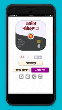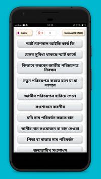 জাতীয় পরিচয়পত্র (NID) হারিয়ে গেলে করনীয়, জাতীয় পরিচয় ও স্মার্টকার্ড সংশোধন, SMART NID CARD করবেন যেভাবে - স্মার্ট ভোটার কার্ড, পাসপোর্ট করার সহজ উপায় how to apply passport, NID CARD কার্ডের সফটকপি সংরক্ষন, নিজে করুন ভোটার IDসহ ৪টি কার্ড, ৫ মিনিটে নিজেই করুন আইডি কার্ড। আশা করব অ্যাপটি দ্বারা সবাই খুব উপকৃত হবেন ও সঠিক সময়ে জাতীয় পরিচয় পত্র করে নিবেন ও রাষ্ট্রীয় সকল সুবিধাসমূহ উপভোগ করবেন।
