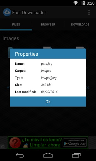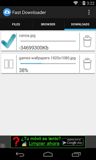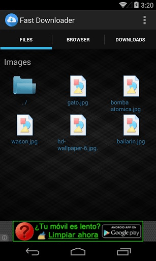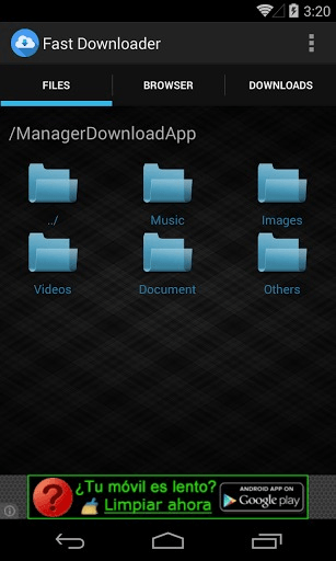 FAST DOWNLOADER. Download files fast. With Fast Downloader you can download any file to your Android device very easily and faster than ever. You can have simultaneous downloads to maximize the speed. You can pause and resume and transfer at any time and downloads are made by 3G, 4G or WiFi. We also include a file manager so you can see, move and delete any file that you have previously downloaded with fast downloader. Fast Downloader is perfect for big files, being able to download as fast as possible and resume if you have a problem with the download. If you're trying to download an unsupported format, fast downloader will take care of it. Use our browser to navigate to the website where you have the files you want to download and get them! FEATURES:. Multi-Protocol: HTTP, FTP supported, bittorrent will be supported in the future.. In App Browser to make your lif easier.. Multi-threading (multiple downloads): Speed up the download by 100%!. Multi-Task: Download different files at the same time.. Pause/resume your downloads: Continue disconnected downloads.. Keep your downloads safe even if you hit a network outage.. Category: All files are categorized by folder in our file manager.. File Manager: Easily manage all files in SD Card that you have previously downloaded.. Downloading Status: progress bar, downloaded notification.. Copy/Paste links: Download tasks can be started by copying/pasting the link directly.