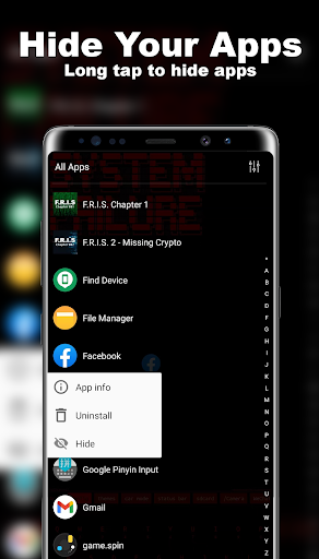 You can hide your apps with K Launcher. The only way to launch the app is to enter the hide code you set. It's not visible until you enter the code.
