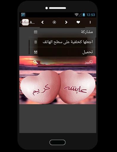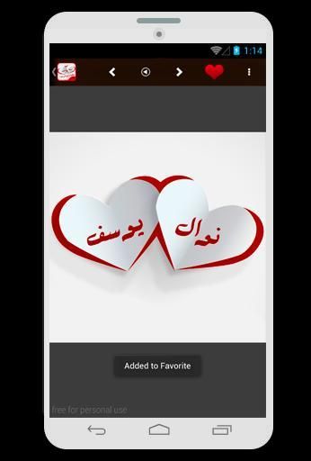 إذا كنت تبحث عن أسماء على صور من اجل ان تكتب إسم حبيبك واسمك في صورة فهذا التطبيق يوفر لك صور جاهزة عليها اسمك و اسم من تحب هدا الاصدار هوا الاخير بعد نجاح التطبيق الاصلي. ليس هذا فقط بل ويمكنك تحميل الصور على جوالك ومشاركتها علي الفيسبوك الواتس اب، الرسائل وأشياء اخري و كتابة الاسماء على الصور بشكل جديد وجميل.
